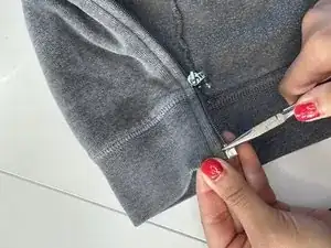 Чтобы убедиться, что ограничитель прочно закреплён на направляющей молнии, осторожно потяните за него после зажима. При необходимости зажмите снова.