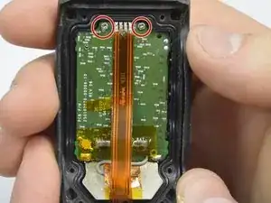 Два винта размера #000 длиной 2.5 мм появятся в верхней части основной платы. Открутите их с помощью отвертки с крестовой головкой размера 000.