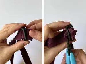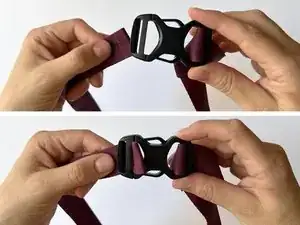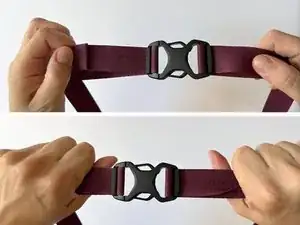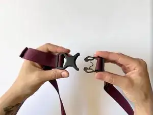 Это руководство покажет, как заменить пластиковую пряжку без необходимости шитья. Чтобы убедиться, что этот способ применим, проверьте, что повреждённую пряжку можно снять с изделия, не распарывая швы.