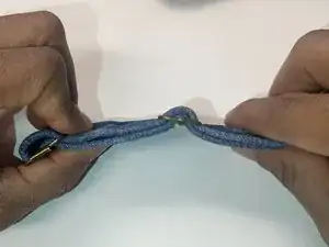 Оставив около одного дюйма запаса, загните конец лямки обратно на себя. Это должно образовать небольшую петлю, заключающую центральный скользящий элемент регулятора.