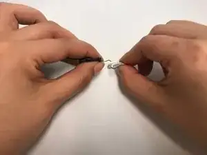 Вставьте один конец пружинного штифта в U-образную часть пряжки.