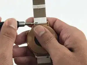 Используйте лопатку, чтобы толкнуть пружину вправо. Это освободит ремешок от головки часов.