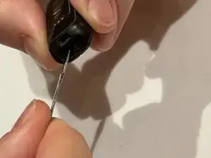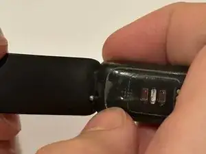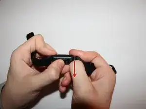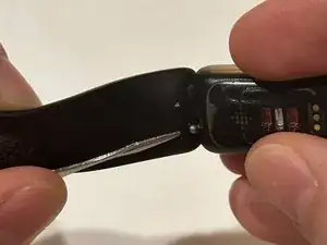 Используйте лопатку или ноготь, чтобы отодвинуть рычаг разблокировки на одном из двух ремешков на оборотной стороне Fitbit.