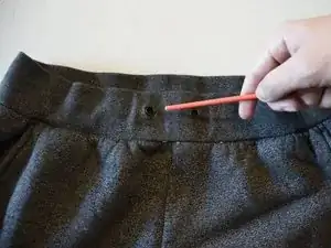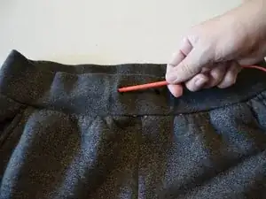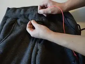 Вставьте тупой конец нитенаправителя в отверстие на спортивных штанах.