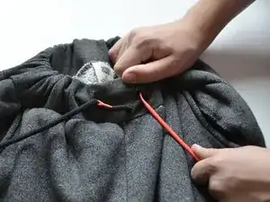 Соберите ткань вместе, чтобы протолкнуть нитенаправитель через полую кулиску спортивных штанов.