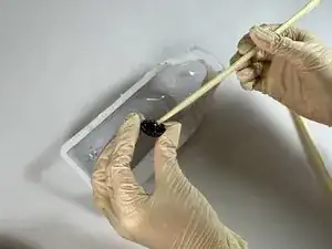 Используйте палочку для еды, чтобы нанести клей на накладку.