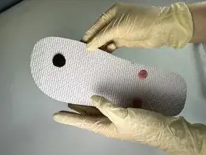Используйте маркер, чтобы нарисовать маленький круг на противоскользящих накладках.