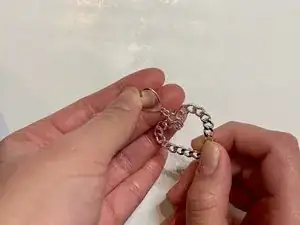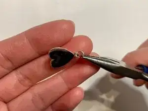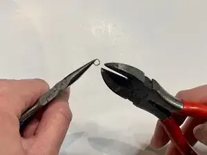 Используя плоскогубцы с маленькими губками, потяните назад за небольшое соединительное кольцо, чтобы создать отверстие.