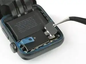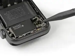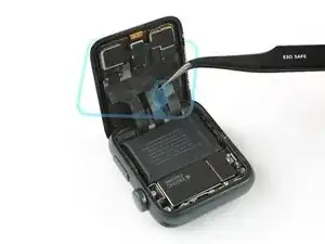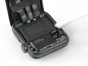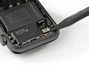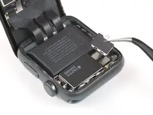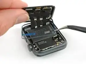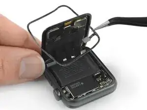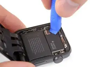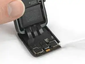 В GPS-версии возможно сразу отключить аккумулятор. В версии с сотовой связью/LTE сначала нужно отключить уплотнитель Force Touch и отогнуть его в сторону, чтобы затем отключить аккумулятор.