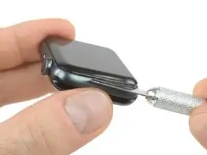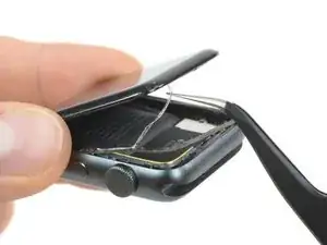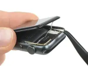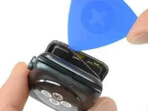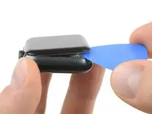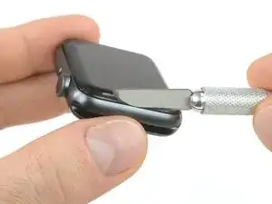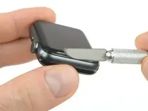 Вставьте лезвие с изогнутым краем в тонкий зазор между дисплеем и внешним корпусом. Начинайте со стороны дисплея, ближайшей к цифровой коронке.