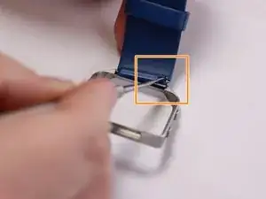 Найдите металлический штифт за браслетом, расположенный на краю металлического кольца.