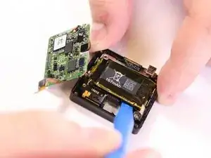 Используйте пластиковую лопатку, чтобы поддеть аккумулятор, отклеивая его от клеевой подложки.