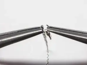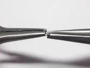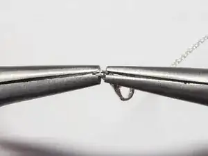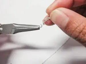 Затем возьмите новое кольцо-замыкатель, найдите его щель и снова откройте его, используя две пары плоскогубцев.