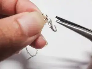 Надевайте цепочку и застежку на новое кольцо-замыкатель.