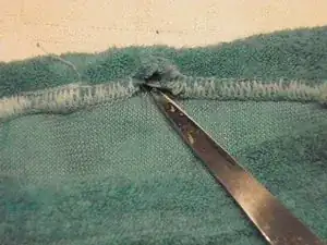 Выведите старую резинку. Для этого аккуратно разрежьте шов в незаметном месте с изнаночной стороны пояса ножницами или распарывателем так, чтобы не повредить ткань.