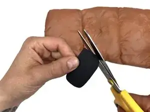 Используйте острые ножницы, чтобы вырезать форму из Tenacious Tape®, которая будет достаточно большой, чтобы покрыть отверстие и перекрыть его хотя бы на полутора сантиметров (~13 мм) со всех сторон.