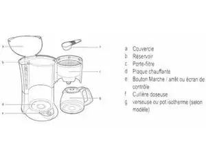 Кофеварка состоит из основного корпуса, в котором находится кофейник. Корпус включает в себя резервуар для холодной воды, держатель фильтра (для крепления фильтра и молотого кофе), нагревательную плиту для поддержания температуры кофе и кнопку включения/выключения или управляющий экран в зависимости от опций (программируемый...).