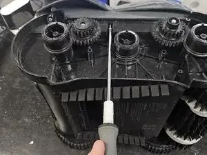 Открутите винт посередине шестерни, затем снимите шестерню.