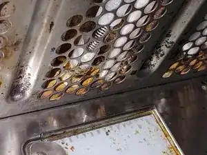 Откройте дверь духовки и осветите потолок духовки с помощью фонарика.