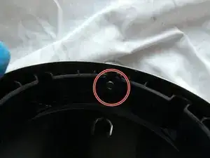 Нажмите на чёрную пластиковую точку и разъедините верхнюю и нижнюю части