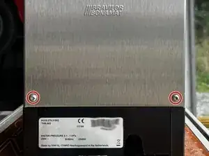 Снимите два винта T15, как показано на изображении. Также можно использовать плоскую головку 4 бит.