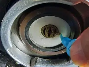Он, вероятно, будет очень грязным и потребует чистки горячей водой и щёткой. Используйте иглу для удаления засоров из отверстий фильтра. Можно также применить наконечную зубную щётку для удаления мусора вокруг отверстия под винт, откуда выходит вода.