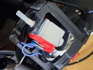 Установите новый насос и подсоедините синие провода обратно к клеммам.