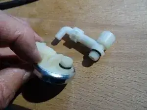 Старый предохранительный клапан — на первом фото уже расширившийся — накручен на помпу. Его заменяют комбинацией предохранительного клапана и клапана уравновешивания давления. Мембранный клапан гасит удары помпы, делая течение воды тише и ровнее.