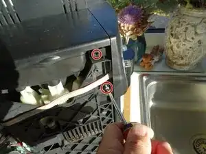Передняя панель закреплена четырьмя винтами PH2, по два с каждой стороны. Выкрутите их.