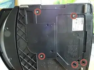 Нижняя панель закреплена пятью винтами Torx TR15 с защитой. Выкрутите их.