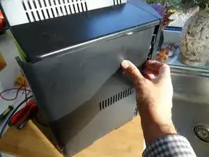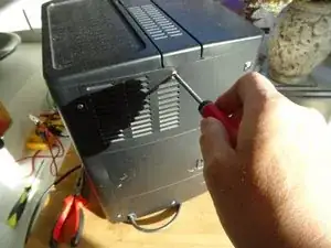 Задняя панель и боковые панели прикреплены шестью винтами с крестообразным шлицем PH2. Выкрутите их.