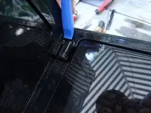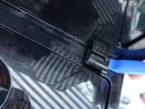 Отодвиньте левую боковую панель назад на примерно 1 см. Она часто заедает, и вам придется помочь ей с помощью пластикового инструмента.