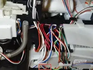 Проследите кабели от керамического клапана. Синий-красный-красный-белый. Разъём должен быть отсоединён от основной платы. (второй разъём слева)