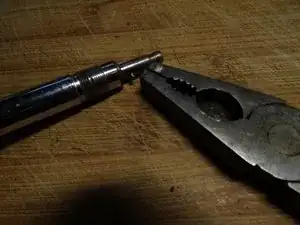 Если резиновая муфта треснула, мотор вращается, а вал — нет. Тогда её нужно заменить. В этом устройстве муфта была в хорошем состоянии, но закручена очень сильно. Поэтому маленький стопорный штифт для ножевой насадки был вытащен с помощью плоскогубцев.