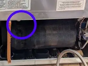 Сдвиньте холодильник от стены, убедившись, что водяная линия не зацепилась и не сжата. Вам не нужно отключать воду — просто отключите устройство от сети. Не убирайте ничего из морозильника, пока не закончите чистку сливного трубопровода. Таким образом ничего не растает.