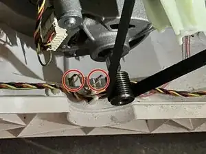 Датчик "протечки воды" состоит из двух контактов, обведенных красным: если между этими двумя штекерами есть проводящее вещество (например, вода), то возникает ошибка F6/E77. Поэтому высушите контакты и области вокруг штекеров. Конечно, двигатель также должен быть сухим.