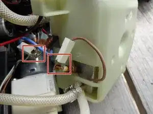 Удалите оба винта Torx T25 из кронштейнов термопредохранителей. Снимите термопредохранители.