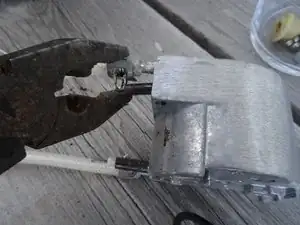 Прищепки легко открываются и закрываются: зажмите плоскогубцами, как показано на фото, и сожмите их вместе. Прижимная пластина выскакивает сразу и освобождает хомут, который затем можно сжать плоскогубцами и отодвинуть в сторону.