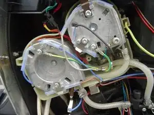 Снимите крышку. Становятся видны два мгновенных водонагревателя.
