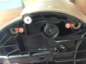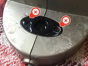 Удалите резервуар для воды, затем с помощью отвертки TR10 сначала открутите два винта за резервуаром (красные стрелки)