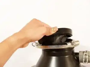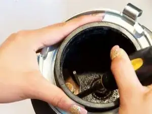 Используя два отвёртки, вставьте их в крючки на верхней части мусорозахвата и прокрутите по часовой стрелке.