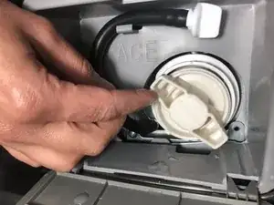 Вытащите сливной шланг и открутите белую крышку, чтобы слить излишки воды в таз.