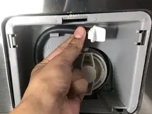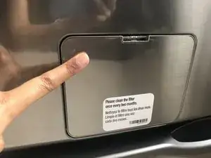 Осторожно нажмите на верхнюю часть дверцы фильтра, чтобы открыть её.