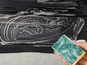 Окуните мягкую губку в мыльную воду и аккуратно протрите стекло, пока не исчезнут жир и пятна.