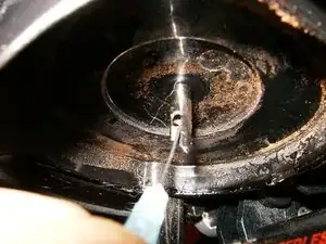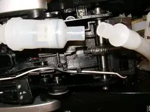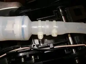 Далее снимите стяжки. (Этот шаг можно пропустить) Просто отсоедините другой конец шланга от насоса. Возможно, придётся использовать плоскую отвёртку, чтобы приподнять конец шланга при вытягивании.
