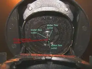 Снимите два маленьких винта, которые крепят водяную линию к патрубку.