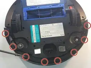 Используйте крестовую отвертку №1, чтобы вынуть восемь винтов 7,6 мм вдоль нижней части бампера RoboVac.