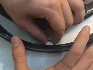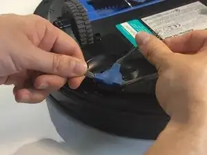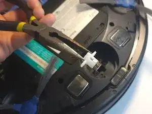 С помощью плоскогубцев с узкими губками выньте пластиковую заглушку оси из корпуса RoboVac.
