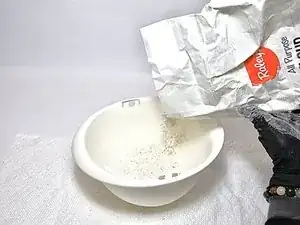 Убедитесь, что миска не используется для еды, так как следующие шаги могут её испачкать.