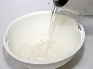 Налейте горячую воду в миску и дождитесь, когда произойдёт химическая реакция.